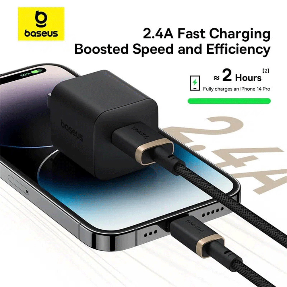 کابل شارژ سریع یواسبی به لایتنینگ 20 وات یک متری بیسوس P10377801U01-01
