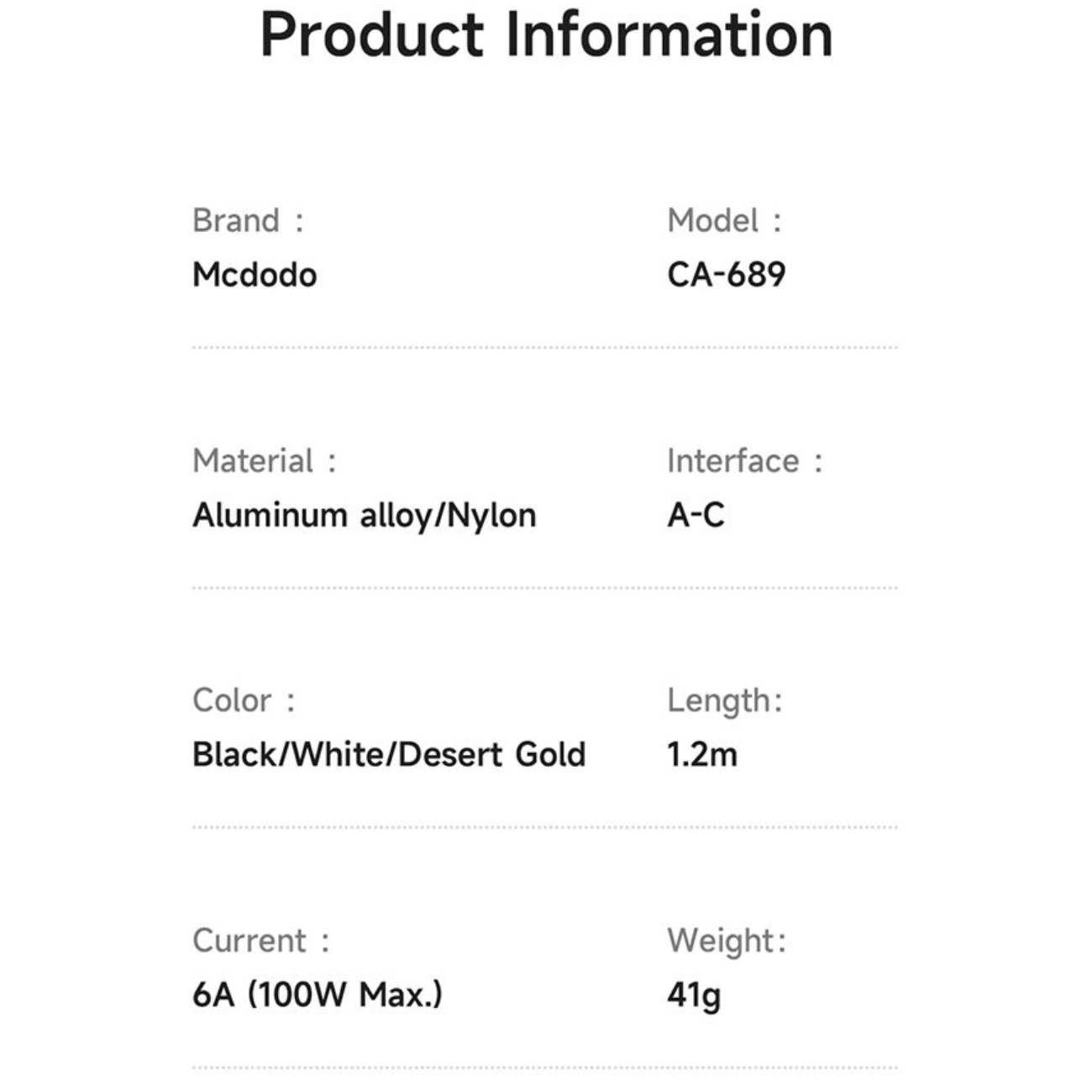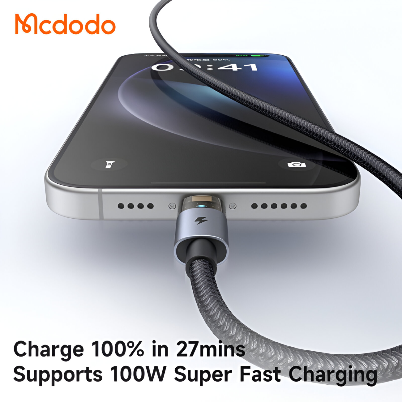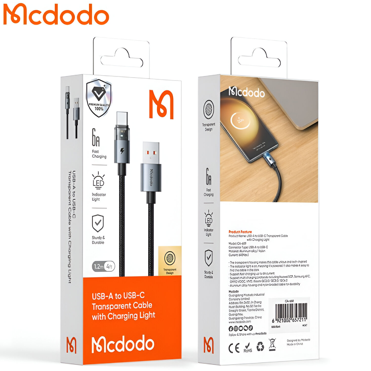 کابل سوپر فست شارژ یو اس بی به تایپ سی شفاف 100 وات 6 آمپر 1.2 متری مک دودو CA-689