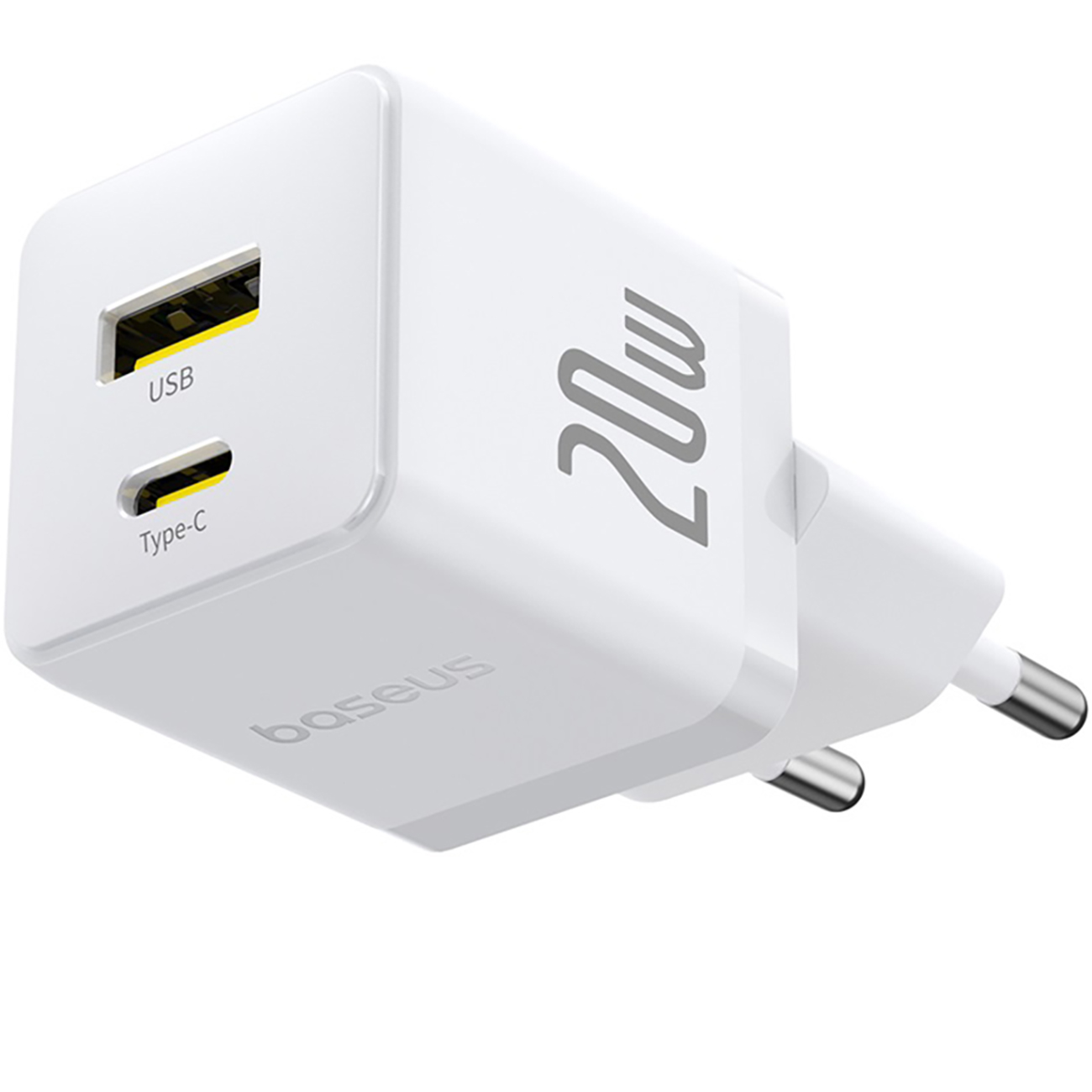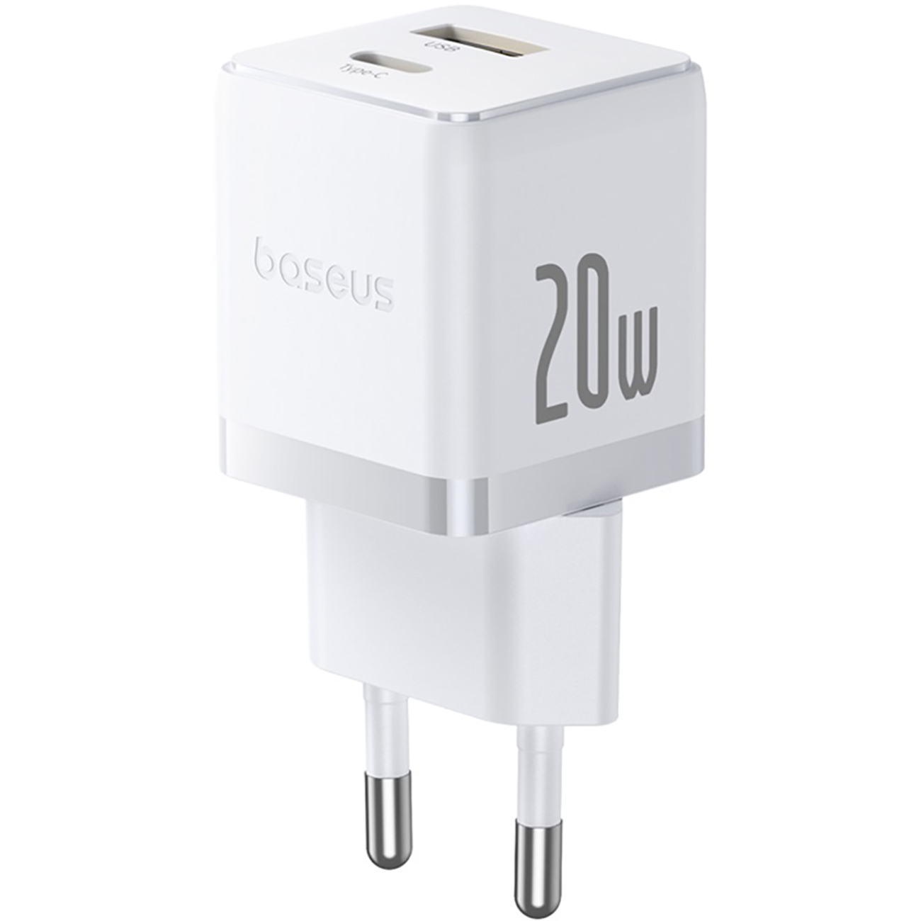 شارژر دیواری 20 وات فست شارژ Type-C و USB بیسوس با کابل دو سر تایپ سی CCZC20UE