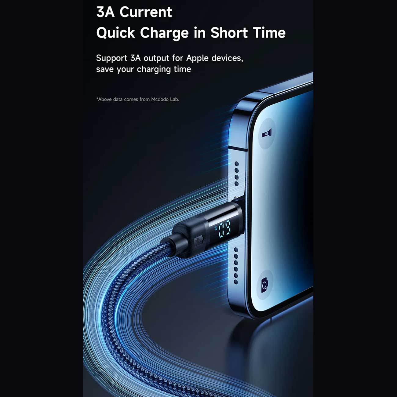 کابل شارژ و انتقال داده فست یو اس بی به لایتنینگ 3 آمپر 1.2 متری مکدودو CA-500